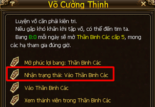 | Trạng Thái:Thần Binh Các | ![]() |